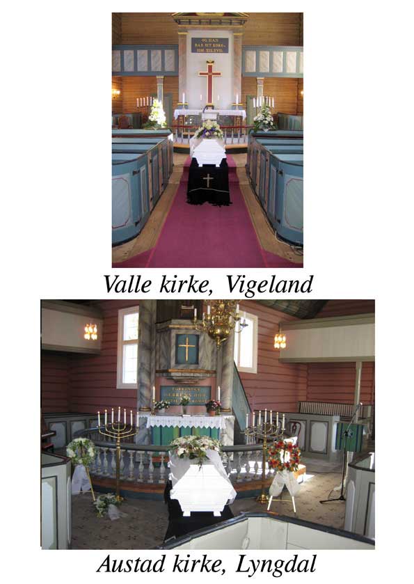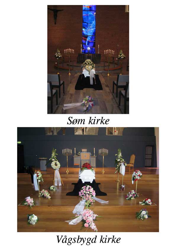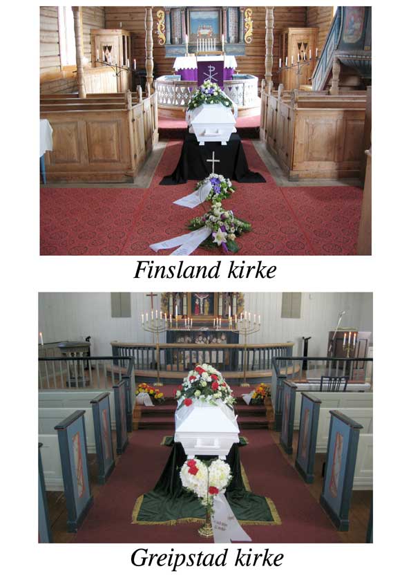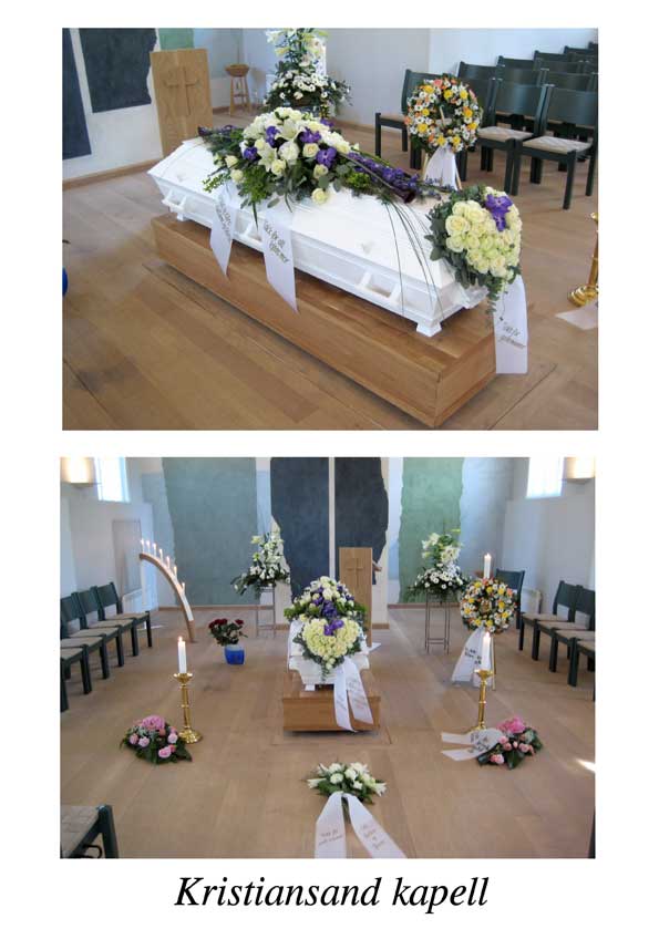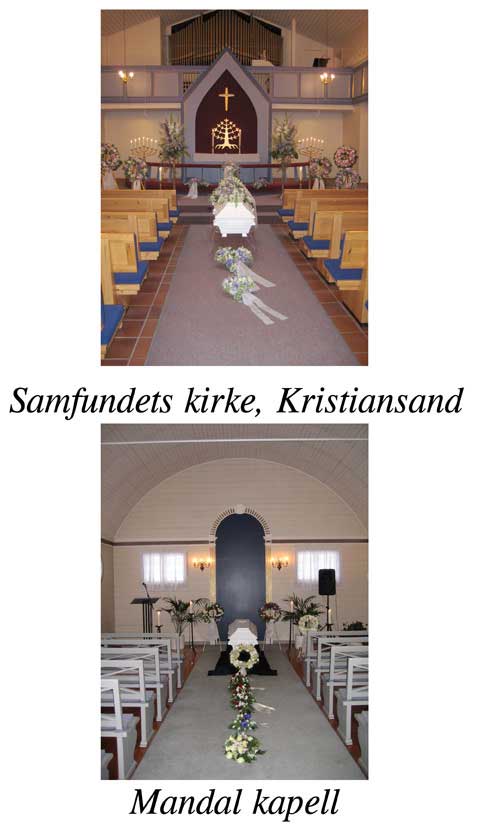 Vi har lagt ut noen enkle fotografier tatt inne i ulike seremonirom på Sørlandet – til hjelp for etterlatte som er ukjente med kirkene / kapellene på Sørlandet.