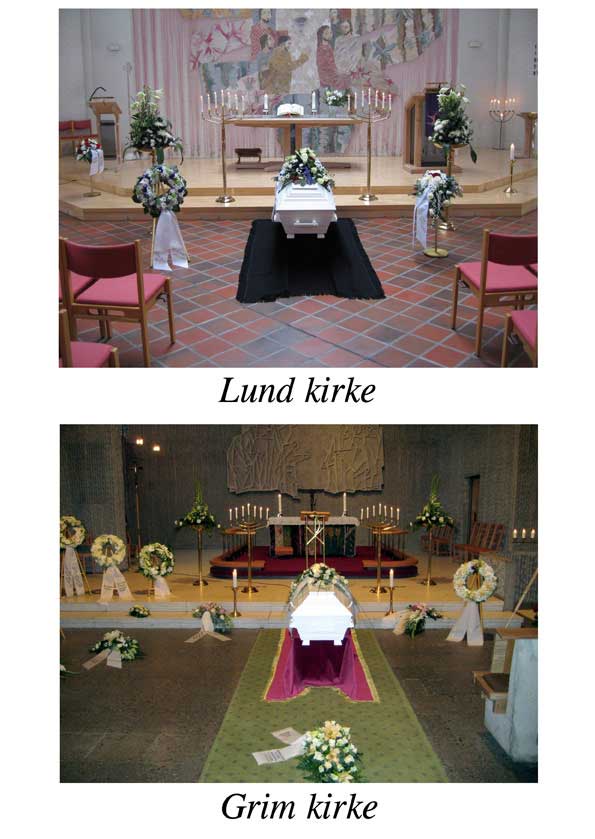 I kirken foregår gravferd etter den kirkelige liturgien. I kapell er det åpent for tros- og livssynsnøytrale /livssynsåpne seremonier ved begravelse / bisettelse.