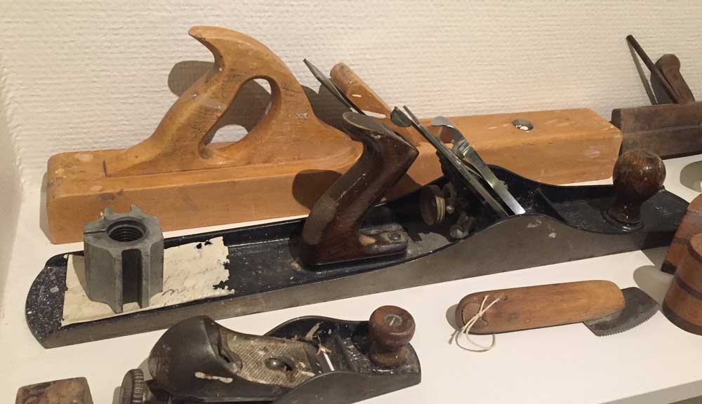 Både kjøkkenbord og taburetter ble produsert i snekkerverkstedet i Elvegata 11. Og altså bakespader, til alle bakerne i Kristiansand, fra Anton Andås begravelsesbyrå. Noe av verktøyet som var i bruk har vi tatt vare på, i dag står det utstilt i lokalene våre.